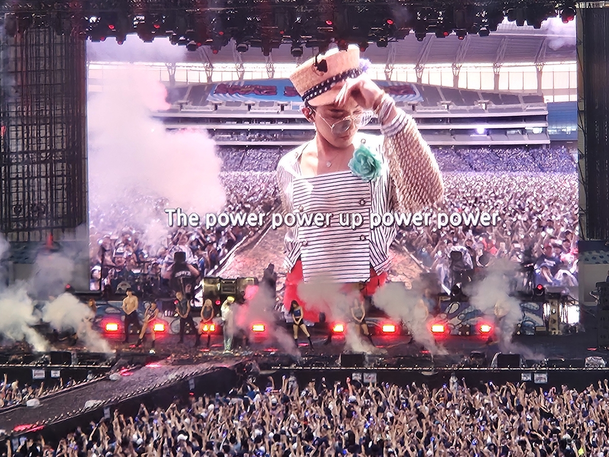 지드래곤은 힘 있는 랩을 앞세운 '파워'(POWER)와 '홈 스위트 홈'(HOME SWEET HOME)으로 관객의 기선을 제압했다. 지드래곤이 싸이와 '삐딱하게'를 부르다 입고 있던 셔츠를 벗어 던지자 객석에서는 폭발적인 탄성이 터졌다.