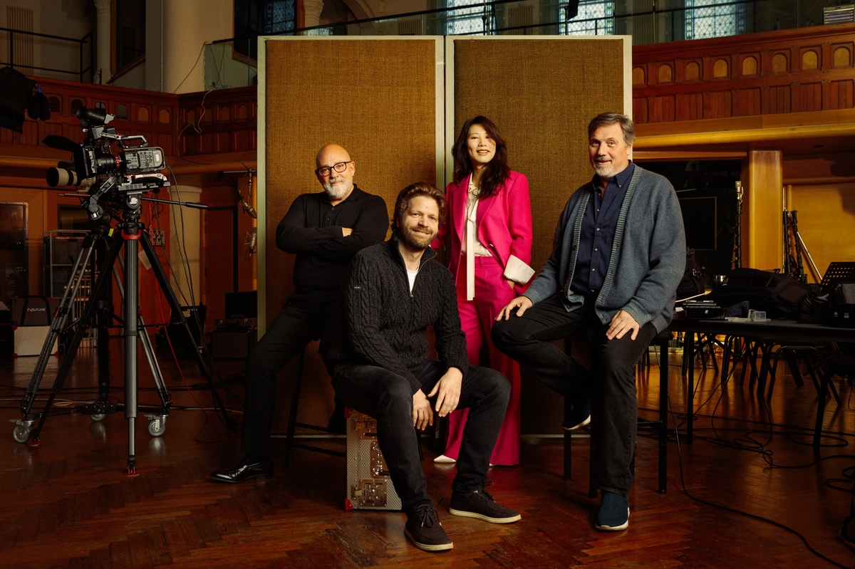 (왼쪽부터) 편곡자 맷 던클리(Matt Dunkley), 코디네이터 가레스 그리프트(Gareth Griffiths), 임현정, 프로듀서 제프 포스터(Geoff Foster).