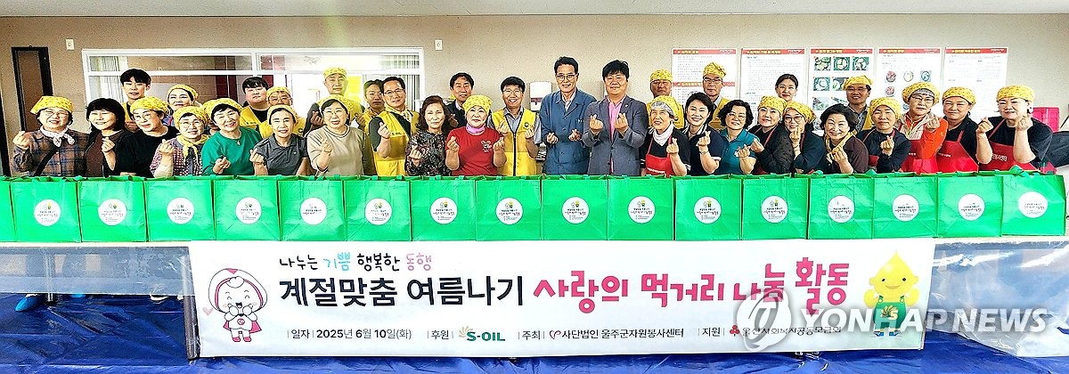 (울산=연합뉴스) 10일 울산 울주군자원봉사센터 주관으로 계절맞춤 여름나기 사랑의 먹거리 밑반찬 만들기 나눔활동 행사가 열렸다. 에쓰오일이 3천만원을 후원한 이 행사에서 자원봉사자들은 열무김치, 더덕김치, 젓갈 3종으로 꾸러미를 만들어 어려운 이웃에 전달했다. 2025.6.10 [울주군 제공.재판매 및 DB 금지] young@yna.co.kr