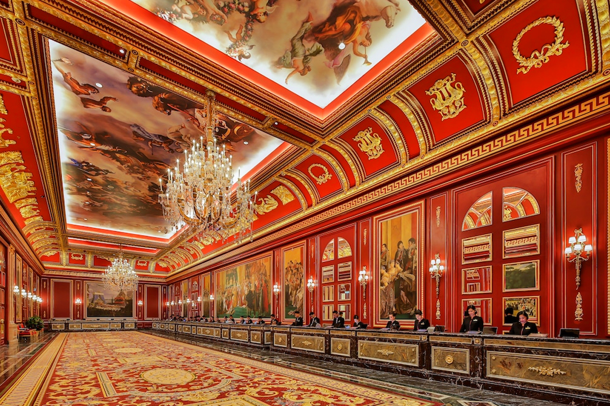 더 파리지앵 마카오의 로비는 팔레가르니에 오페라 극장에서 영감을 얻었습니다.