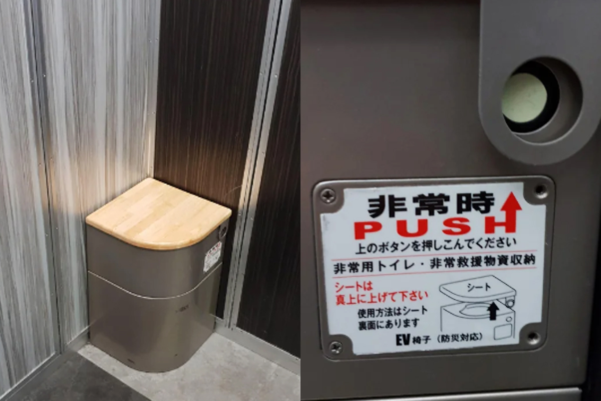 일본의 엘리베이터에서 비상용 화장실을 흔히 볼 수 있습니다.