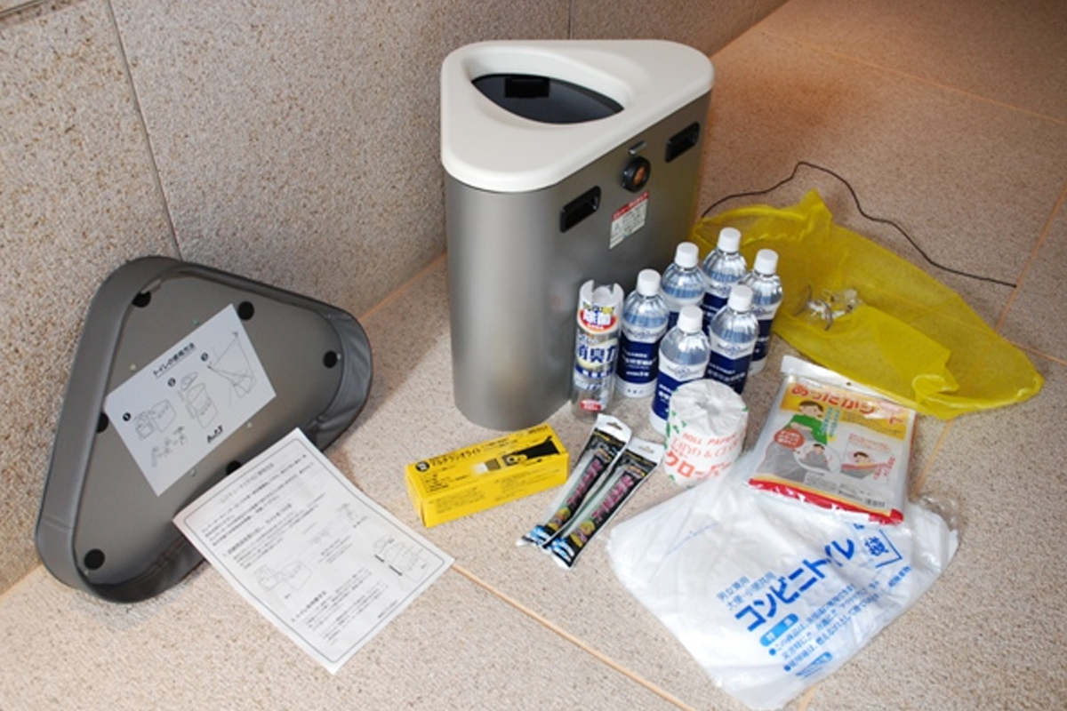심지어 이동식 화장실까지 비치하고 있습니다. 지진 발생 시 사용하는 변기인데요.