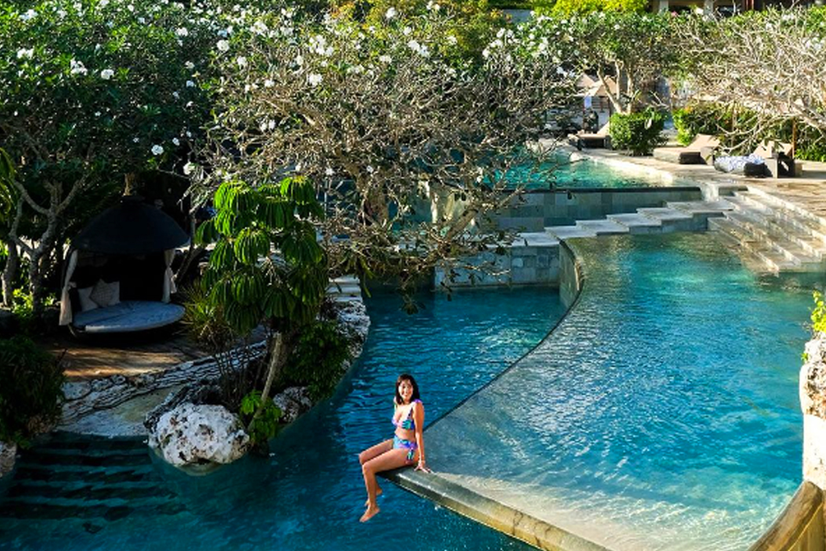 발리의 자연을 감상하며 수영을 할 수 있다는 점이 가장 매력적입니다.