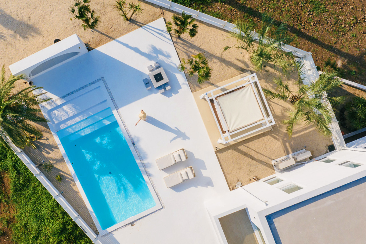 흰색으로 이루어진 외관과 에메랄드빛이 독특한 수영장이 매력적인 풀빌라입니다. 프라이빗 스테이로 편안하게 머무를 수 있는 곳이죠.