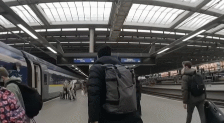 영상 속 유튜버는 유럽 간 이동 시 이용하는 열차 ‘유로스타’에 탑승했습니다. 그는 자리에 앉기 전 머리 위에 있는 선반에 자신의 짐을 놓았죠.