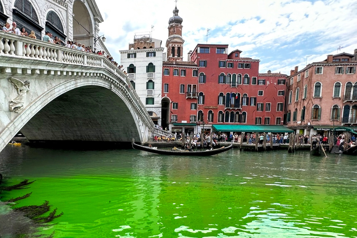 이탈리아의 대표적인 관광 명소인 베네치아 대운하가 녹색으로 변했습니다.