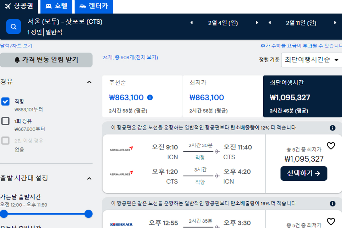 특히 삿포로 눈 축제 기간 항공권 가격은 더욱 치솟습니다.