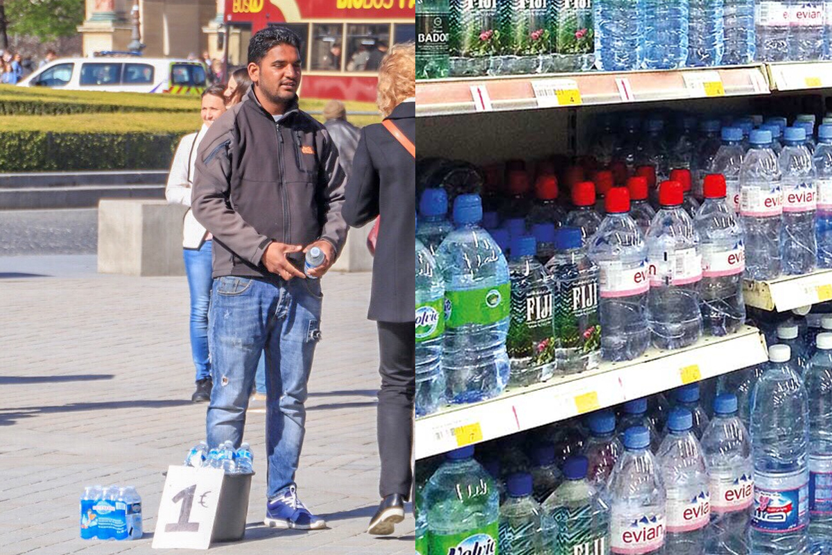 마트와 같은 판매점의 경우, 일반적으로 1.5~2유로의 생수 판매하고 있는데요. 비교적 저렴한 길거리 생수의 가격과 중동인들에 대해 가지고 있는 비교적 긍정적인 인식은 1유로 생수의 구매로 이어지곤 하죠.