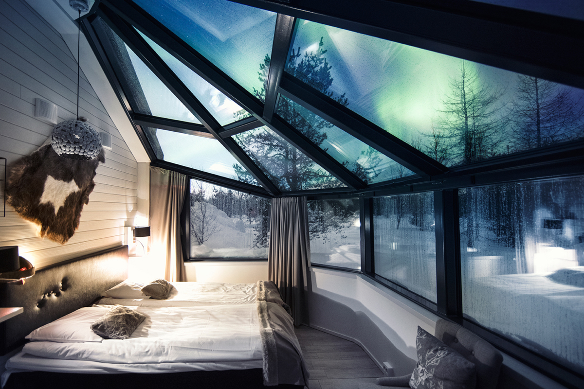 운이 좋은 날이면 객실에서 하늘에 수 놓인 오로라를 감상할 수 있는데요. 밤새도록 오로라를 볼 수 있는 곳이죠.