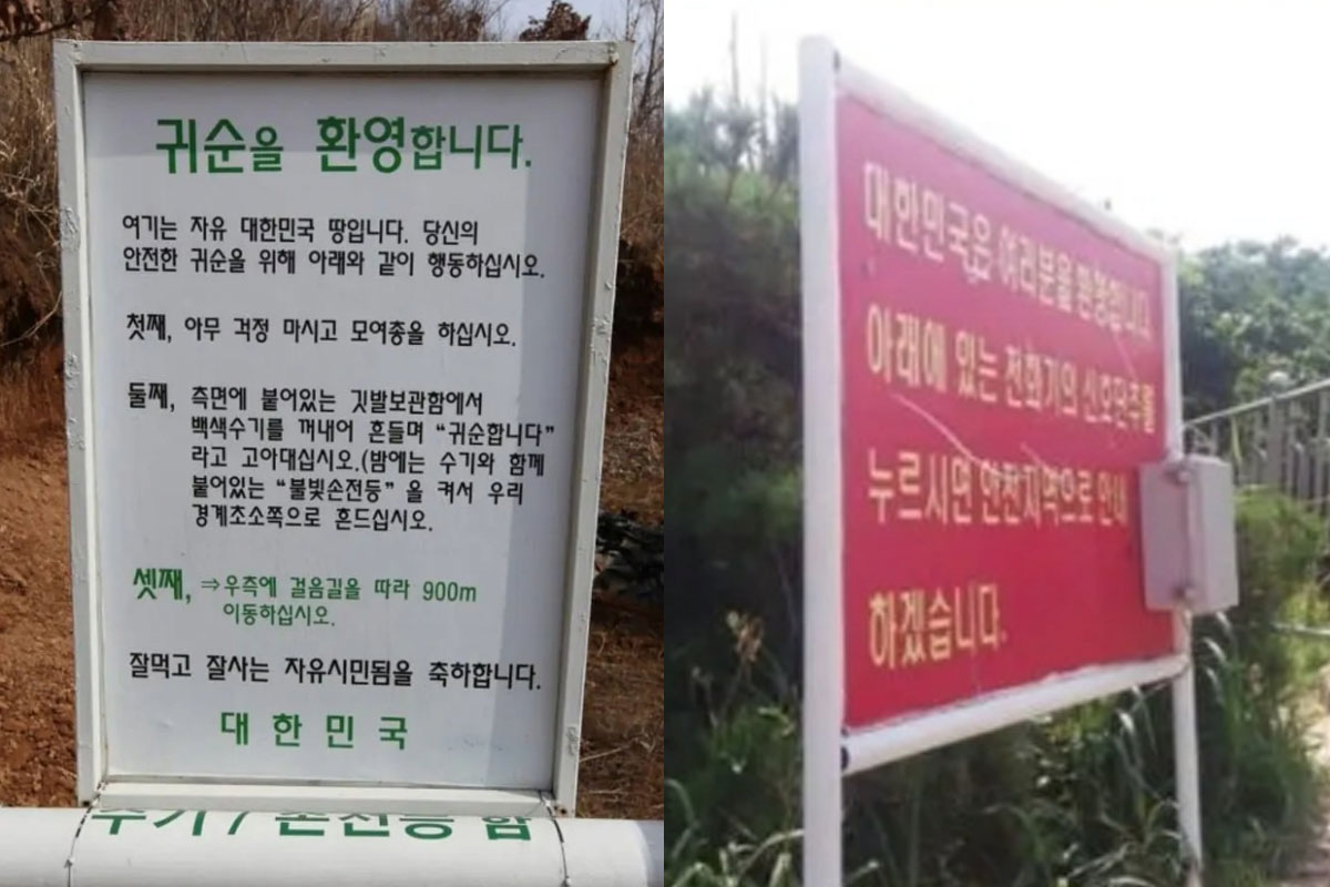 우리나라인 듯하지만, 아닌 것 같기도 해 조금은 오싹한 사진들이 화제가 되고 있습니다. 사진 속 표지판에는 “대한민국은 여러분을 환영합니다.”, “귀순을 환영합니다” 등의 메시지가 적혀 있는데요.