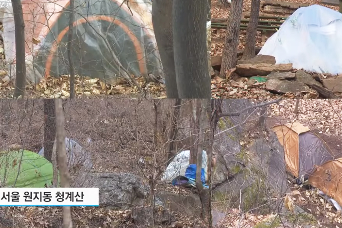 청계산은 현재 불법 텐트로 골머리를 앓고 있습니다.