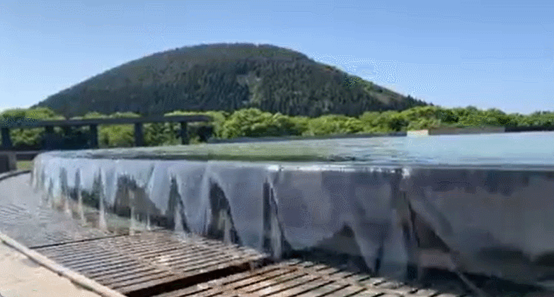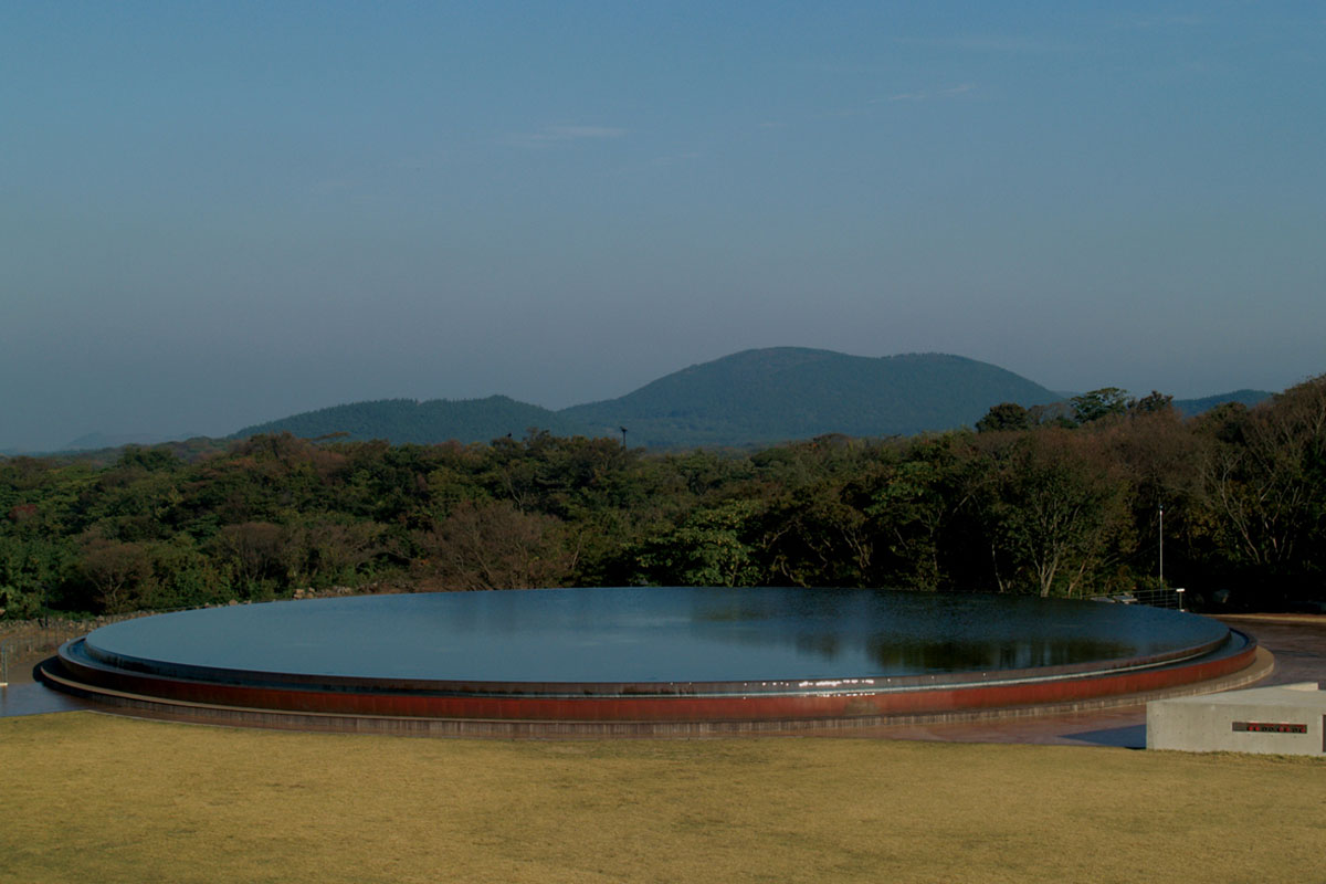 제주돌문화공원의 매표소를 지나 들어가면 전설로 향하는 통로와 숲길이 나오는데요. 이곳을 지나면 거대한 하늘연못이 나옵니다. 하늘연못은 돌박물관의 옥상에 설치되어 있죠.