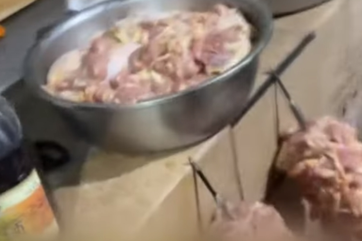 덮밥에 들어가는 닭고기는 꼬치에 끼워진 채 주방 바닥에 놓여 있었죠. 주방 개수대는 까맣게 변했습니다.