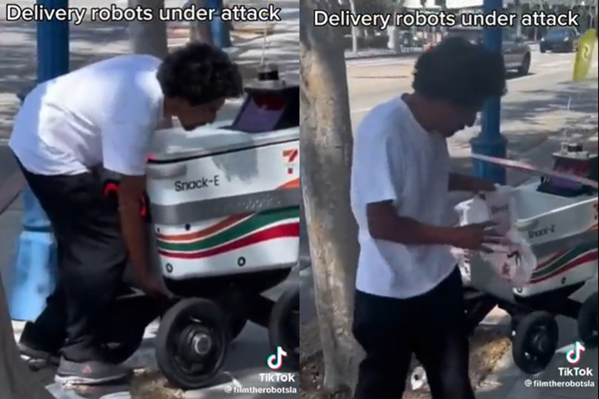 심지어 배달 로봇을 약탈하거나 로봇 위에 올라타는 이들도 있는데요.
