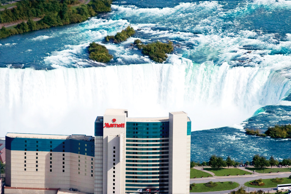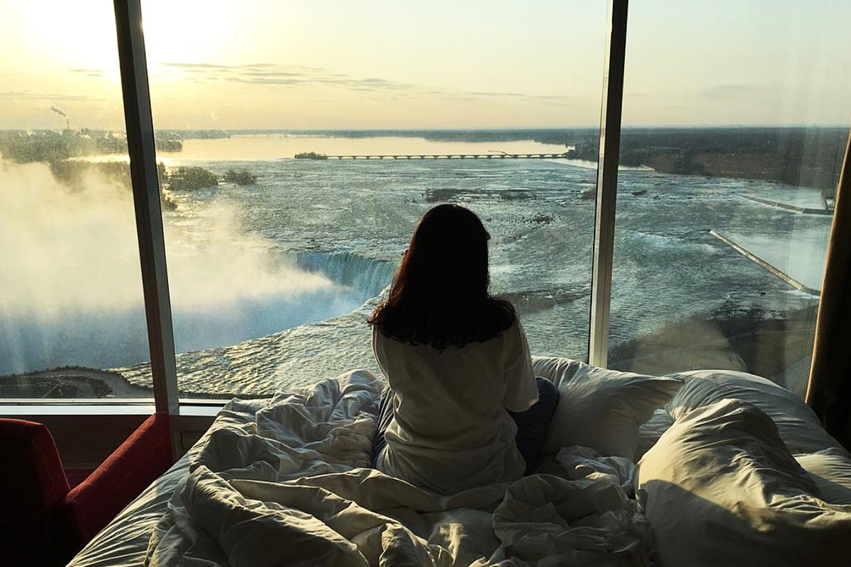 캐나다 온타리오주에 위치한 ‘나이아가라 폴스 메리어트 폴스뷰 호텔&스파’ (Niagara Falls Marriott Fallsview Hotel&Spa)는 통유리창으로 폭포의 풍경을 감상할 수 있습니다.