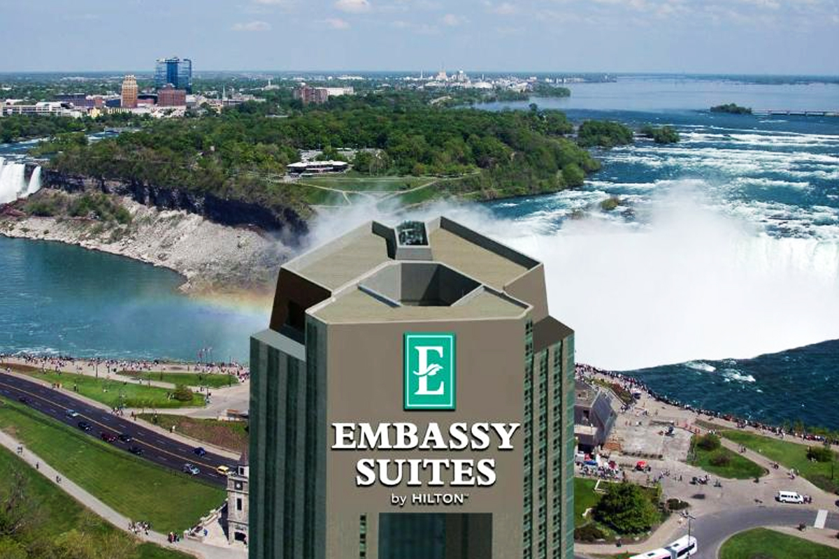 ‘나이아가라 앰버시 스위트 힐튼'(Embassy Suites by Hilton Niagara Falls Fallsview)은 나이아가라 폭포를 감상할 수 있는 대표적인 호텔로 손꼽힙니다.