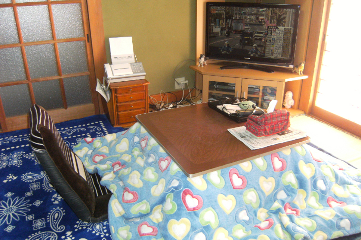 코타츠는 대표적인 난방기구로 윗판과 다리가 따로입니다. 다리 부분에 담요를 덮고 그 위에 상판을 덮어 사용하는데요.