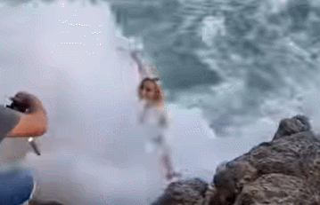 영상 속 여성은 사진을 찍기 위해 파도치는 바다에 들어가 포즈를 취하고 있었는데요.