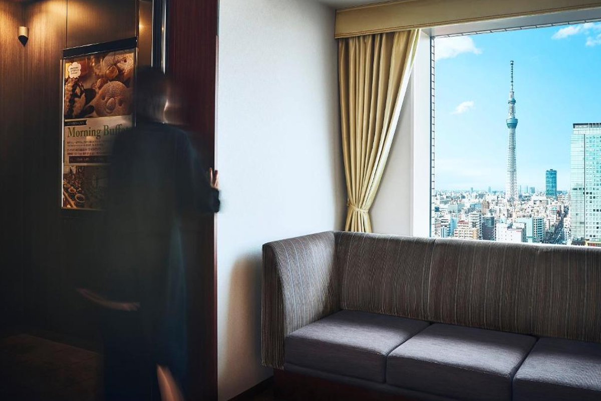 도쿄의 4성급 숙소로 스카이트리를 한눈에 담을 수 있는데요. 객실에서 도쿄의 도심 전경을 감상할 수 있습니다.