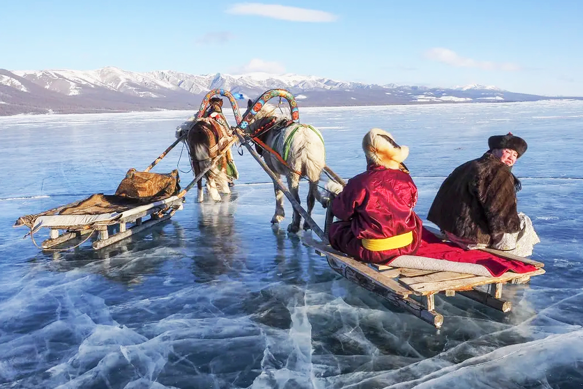 홉스골 호수는 겨울이 되면 꽁꽁 얼어 무늬를 만들어 내는데요. 두껍게 얼어 있는 호수 위를 달리며 겨울을 만끽할 수 있죠.