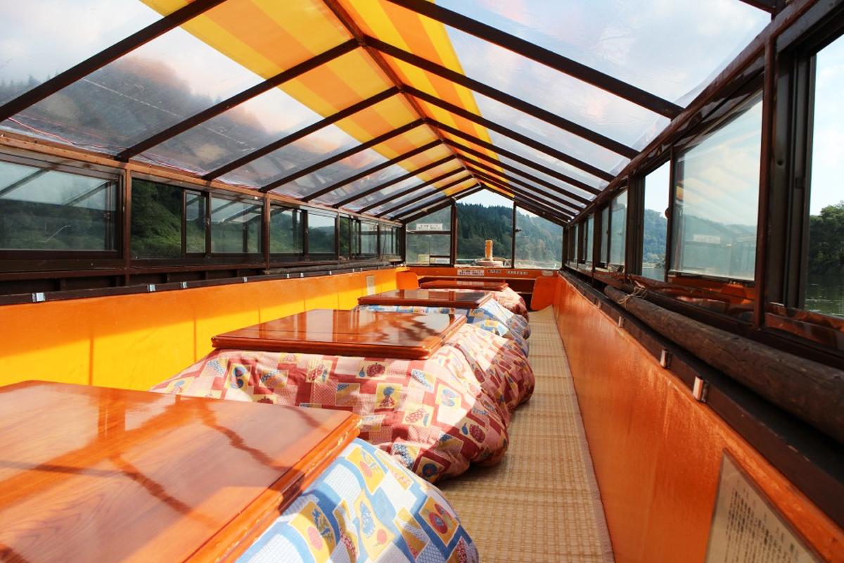 대나무 장대로 배를 운행하는 뱃사공의 안내에 따라 따뜻한 코타츠 속에서 뱃놀이를 즐길 수 있죠.