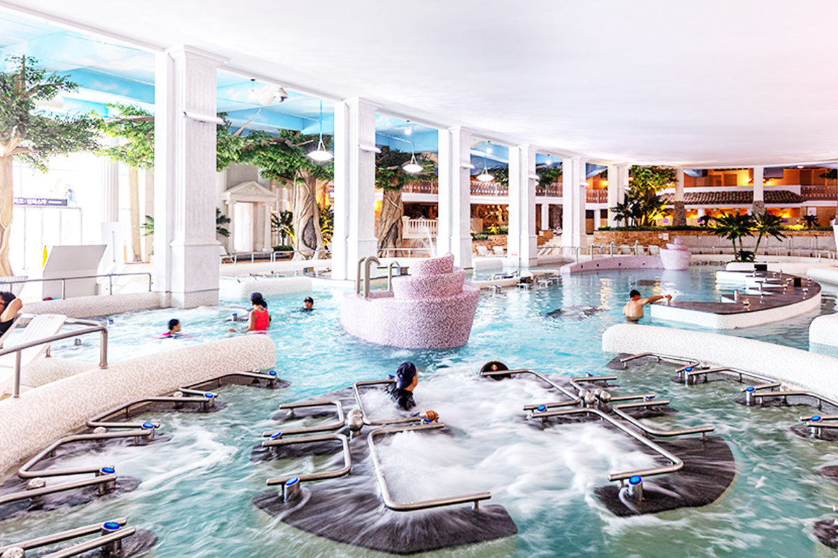 파라다이스 스파 도고는 온천뿐만 아니라 실내외 워터파크에도 100% 천연 온천수를 활용하고 있습니다.
