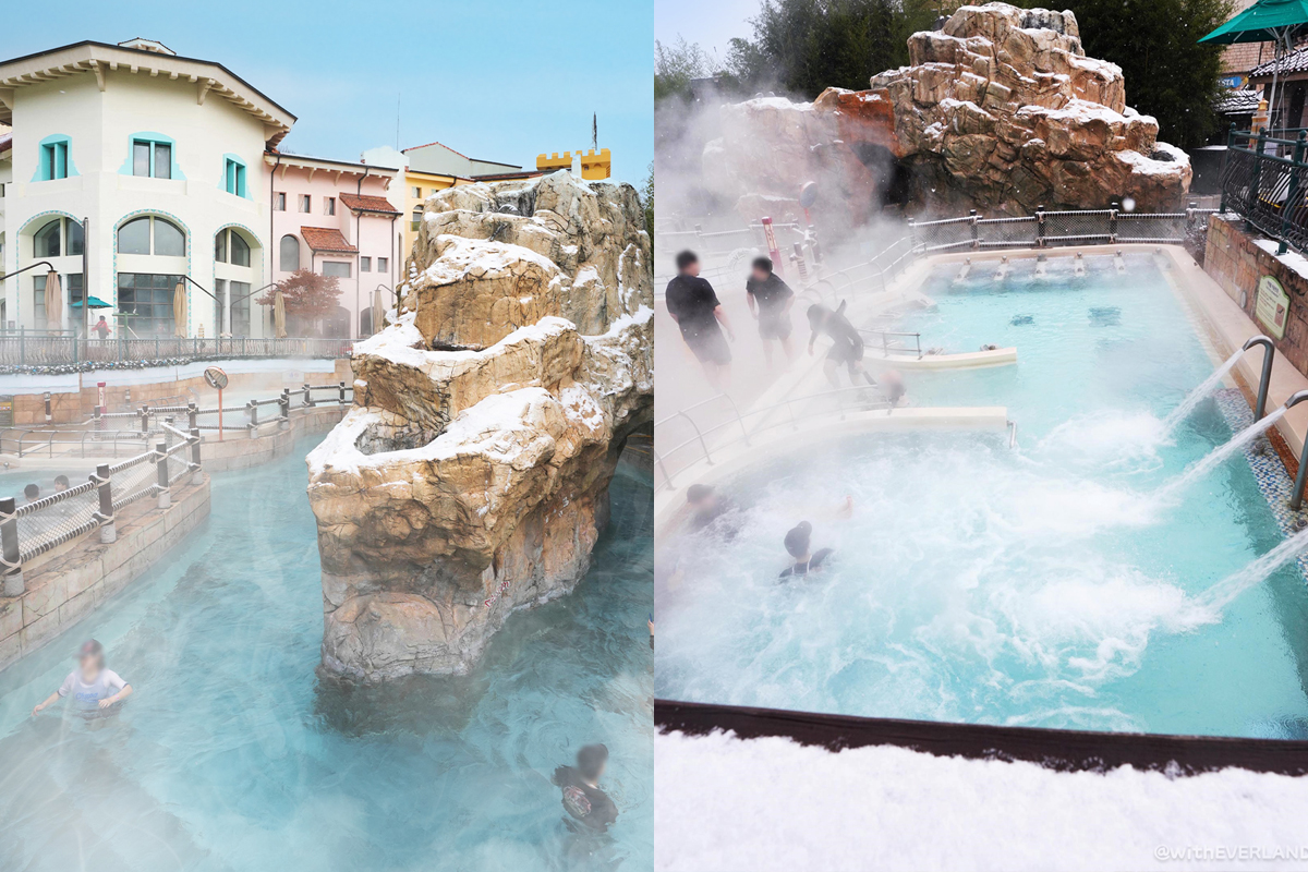 캐리비안베이는 여름철 대표 여행지이지만 겨울에는 노천 스파로 인기를 끌고 있죠.