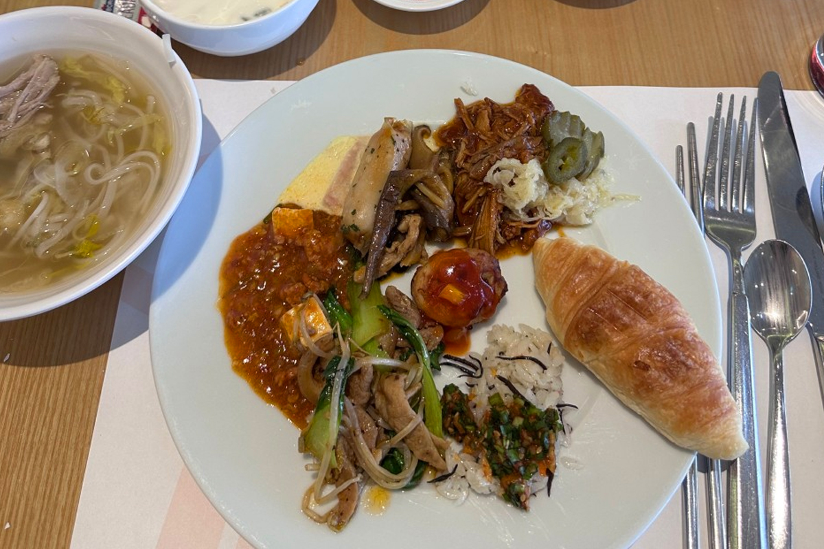 이 외에도 훈제 연어, 해산물/마카로니/닭가슴살 시저 샐러드, 소고기 미역국, 돼지불고기, 폴드 포크, 꽃빵 등을 제공하고 있죠.