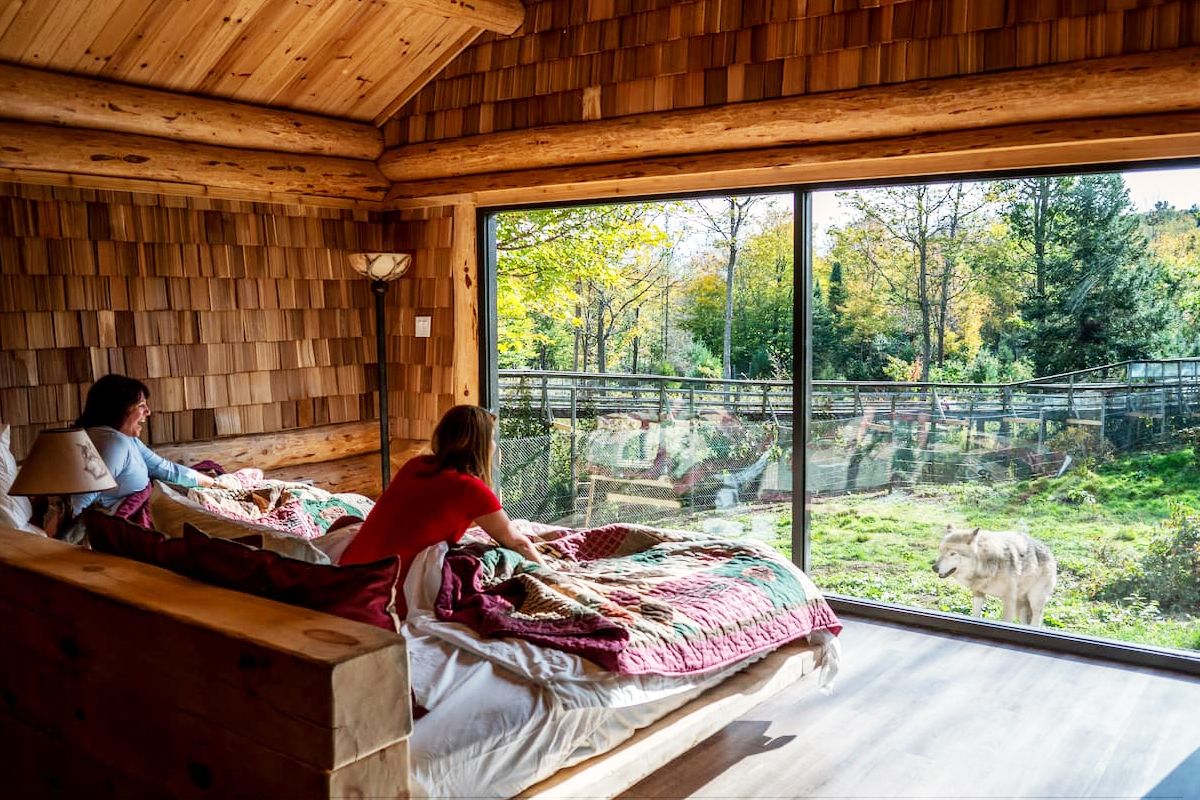 파크 오메가에는 멋진 숙소가 여러 개 있지만, 늑대 캐빈이 가장 인기 있습니다.