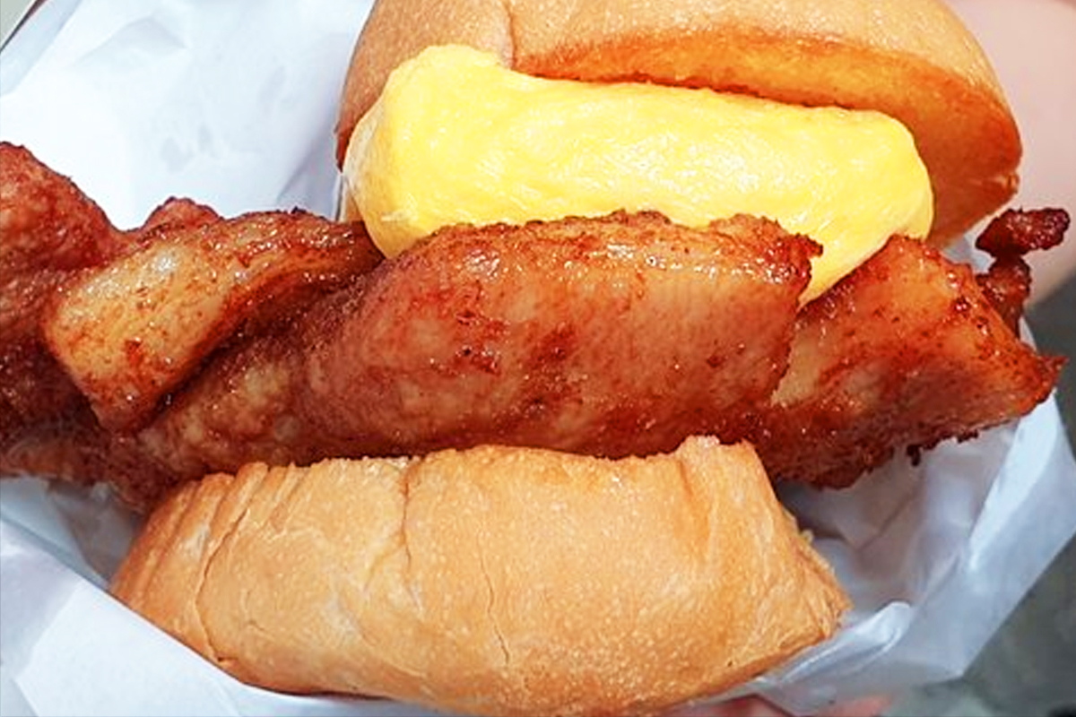 빵 사이에 돼지갈비를 넣은 주빠빠오는 마카오식 패스트푸드입니다.