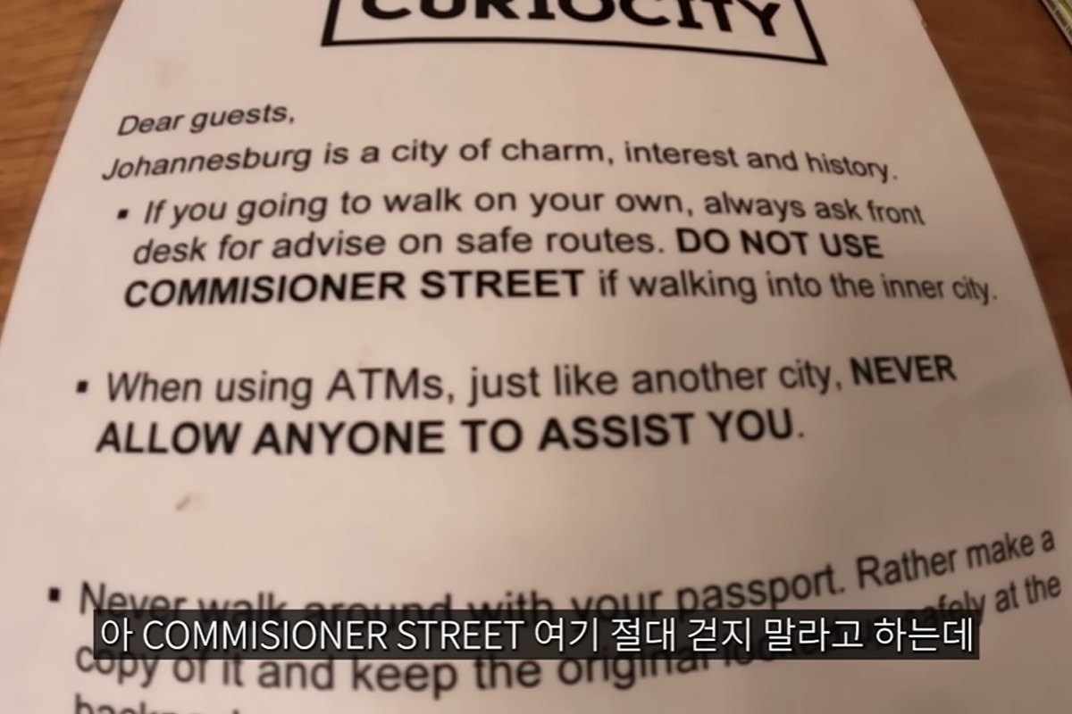 이어 “우버 기사들이 강도로 돌변해서 살인까지 나는 그런 뉴스가심심치 않게 흘러나오는 곳이 남아공 특히 조벅이랍니다. 아무리 대낮이라도 혼자 걷지 마세요. 카메라 들지 마세요”라고 조언했죠.
