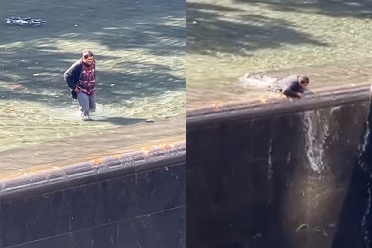 남성이 인공 폭포에 뛰어든 이유는 밝혀지지 않았는데요.