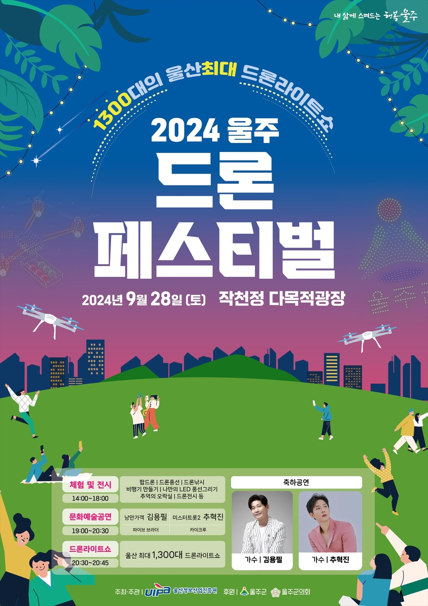 이외에도 드론 특구로 지정된 울주군에서 운용하는 최첨단 드론 기체 전시, 프리마켓, 푸드트럭 존 등 풍성한 즐길 거리가 준비된다.