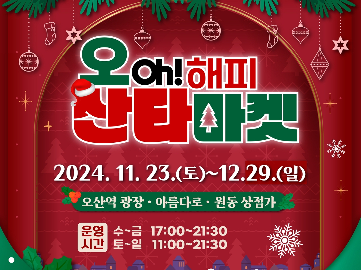 오(oh)! 해피 산타 마켓은 겨울철 오산역 광장과 아름다로, 원동 상점가 일원 등에서 열리는 플리마켓으로, 오산시가 지역 상권 활성화를 위해 추진하는 역점 사업 중 하나다.