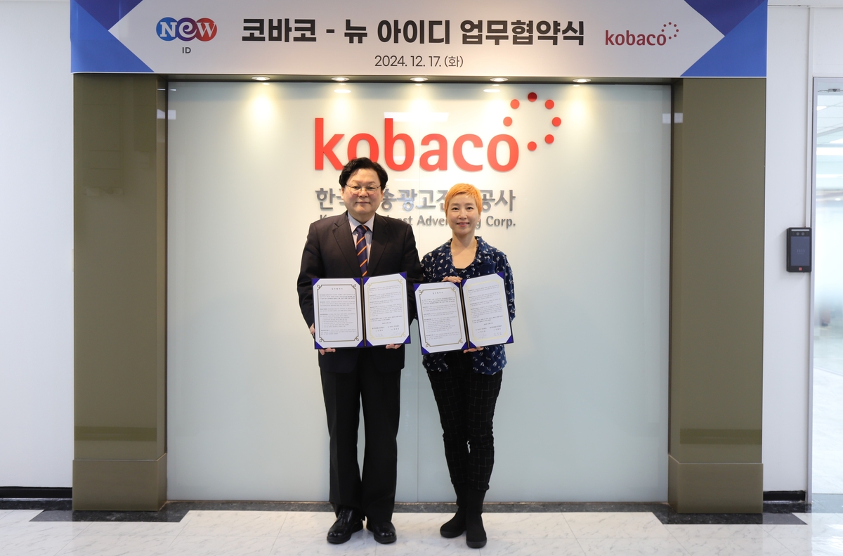 (서울=연합뉴스) 조성미 기자 = 한국방송광고진흥공사(코바코)는 17일 광고 기반 무료 스트리밍(FAST) 서비스 기업 뉴 아이디와 해외 광고 마케팅 사업 협력을 위한 업무협약을 맺었다고 밝혔다.