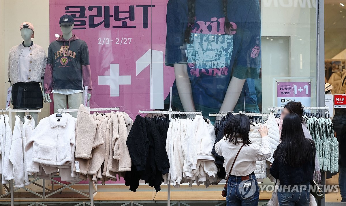 (서울=연합뉴스) 김인철 기자 = 서울의 낮 기온이 최고 10도까지 올라가는 등 포근한 날씨를 보이는 14일 서울 중구 명동에서 관광객들이 봄옷을 고르고 있다. 2025.2.14 yatoya@yna.co.kr