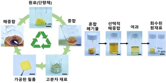 그 때문에 소재 스스로 복구되거나 폐기할 때 다른 자원으로 전환할 수 있는 지속 가능한 고분자 소재들이 개발되고 있지만, 복잡한 합성 과정이 필요하거나 다른 폐기물과 섞이면 분리가 어려운 문제가 있었다.
