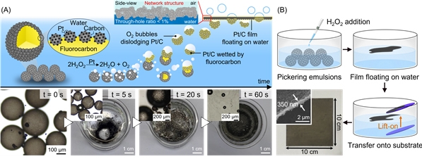 17일 UNIST에 따르면 에너지화학공학과 구강희 교수팀은 물속에 분산된 기름방울로 촉매 박막 등을 제작할 수 있는 기술을 제시했다.