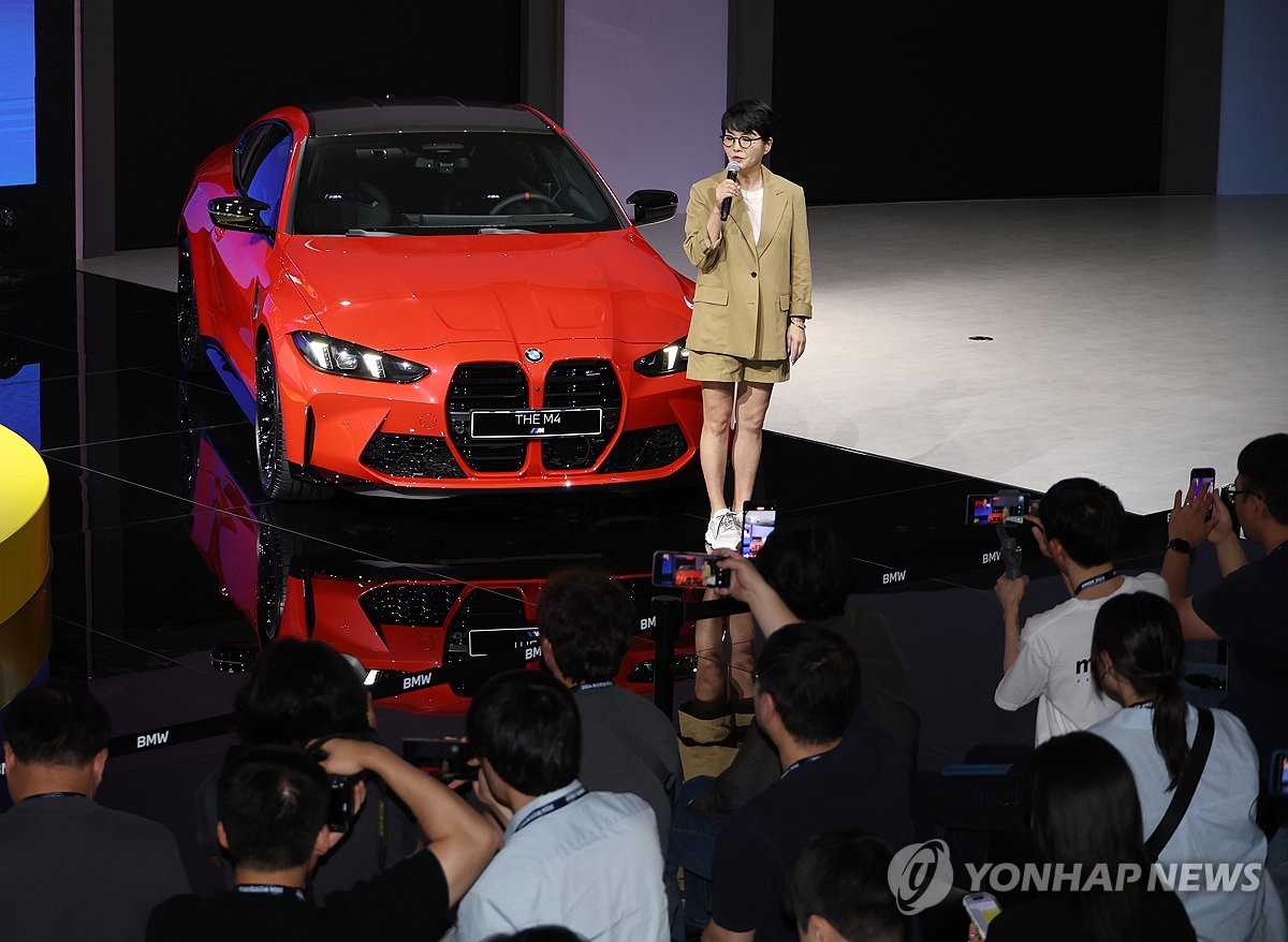 (부산=연합뉴스) 박성제 기자 = 주양예 BMW그룹코리아 상무가 27일 부산 해운대구 벡스코에서 열린 부산모빌리티쇼 프레스데이에서 'BMW 뉴 M4'를 소개하고 있다. 2024.6.27 psj19@yna.co.kr