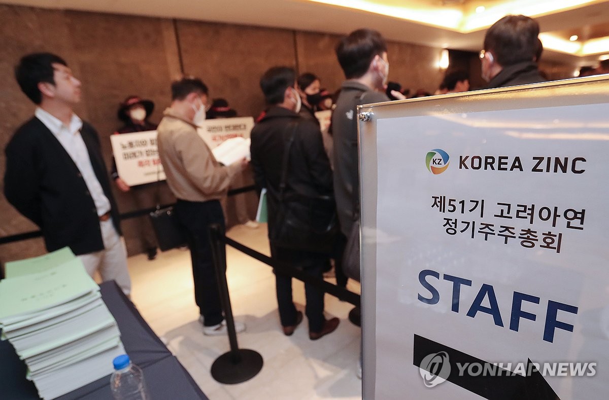 (서울=연합뉴스) 김동규 이슬기 송은경 기자 = 고려아연[010130]이 28일 주주총회에서 영풍[000670]의 의결권을 제한하기 위해 자회사 썬메탈홀딩스(SMH) 보유 영풍 지분을 다시 10% 이상으로 늘렸다.
