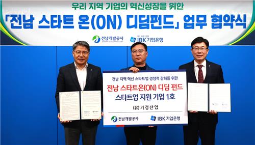 전남개발공사는 이날 IBK기업은행과 함께 '전남 스타트온 디딤펀드' 업무협약을 체결했다.