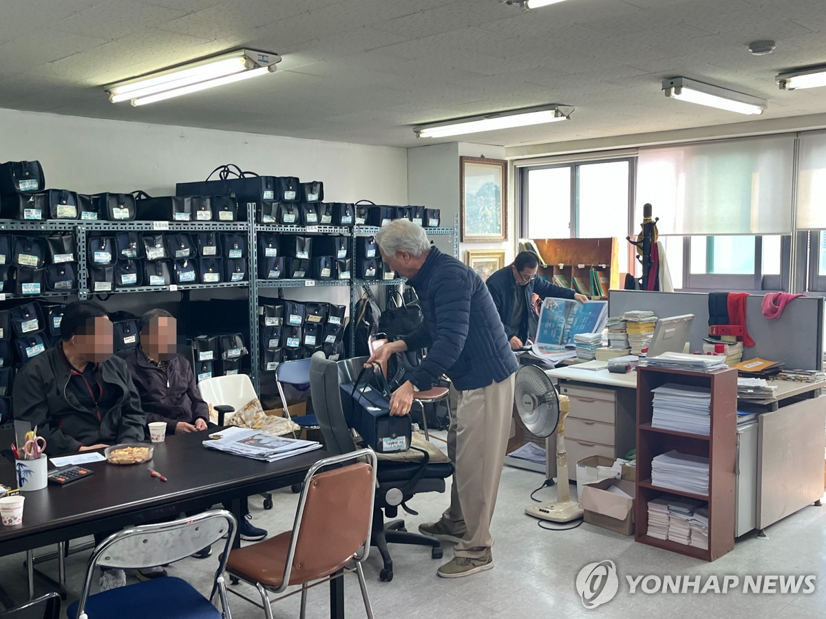 (서울=연합뉴스) 오인균 인턴기자 = 지난 2일 서울 중구 오장동에 위치한 '실버퀵' 지하철 택배 사무실에서 직원들이 일감을 기다리고 있다. 2025.04.13