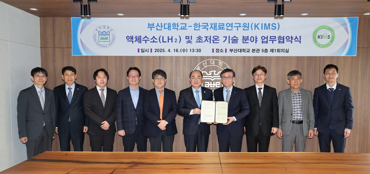 (부산=연합뉴스) 조정호 기자 = 부산대학교와 한국재료연구원(KIMS)은 16일 오후 부산대 대학본부에서 액체수소 및 초저온 기술 분야 업무협약을 했다고 밝혔다.