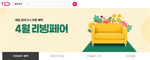 ▲ 11번가 = 다음 달 6일까지 '리빙페어' 기획전을 하고 침구류, 가구류, 수납용품 등 150여개 제품을 엄선해 최대 15% 할인가에 판매한다. 대표 제품은 플로라 뉴썸머 시어서커 아사면 누빔이불, 리브맘 피그먼트 베개커버, 동서[026960]가구 리빙스 3인용 가죽소파 등이 있다.