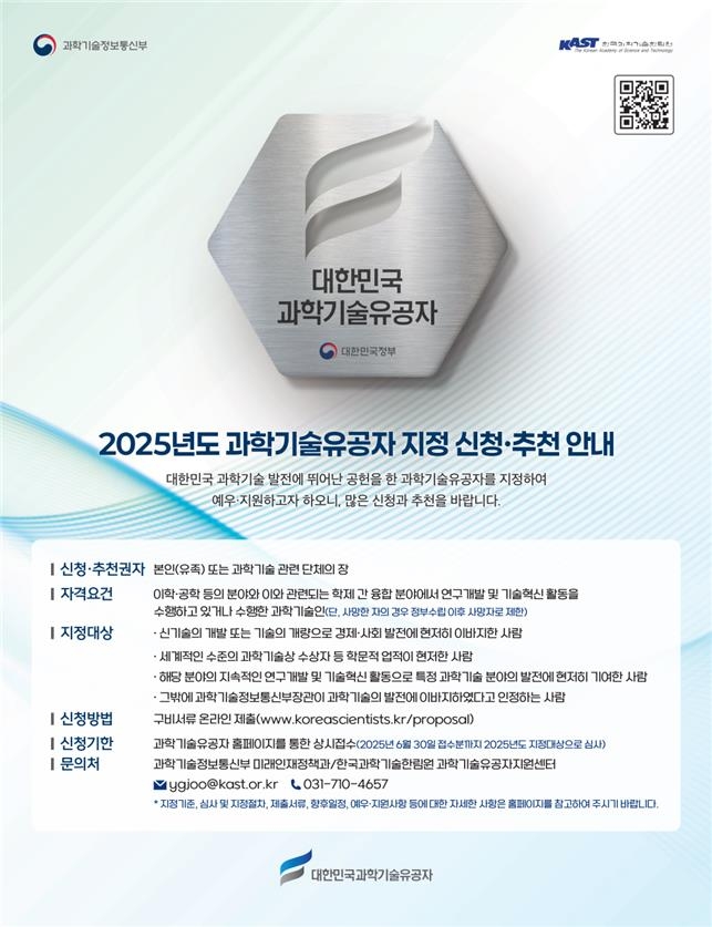 누구나 소셜미디어(SNS)에 소개하고 싶은 과학기술인 공적에 관한 에세이를 등록하면 후보자 발굴에 반영하는 것으로, 에세이 공모 기간은 5월 31일까지다.