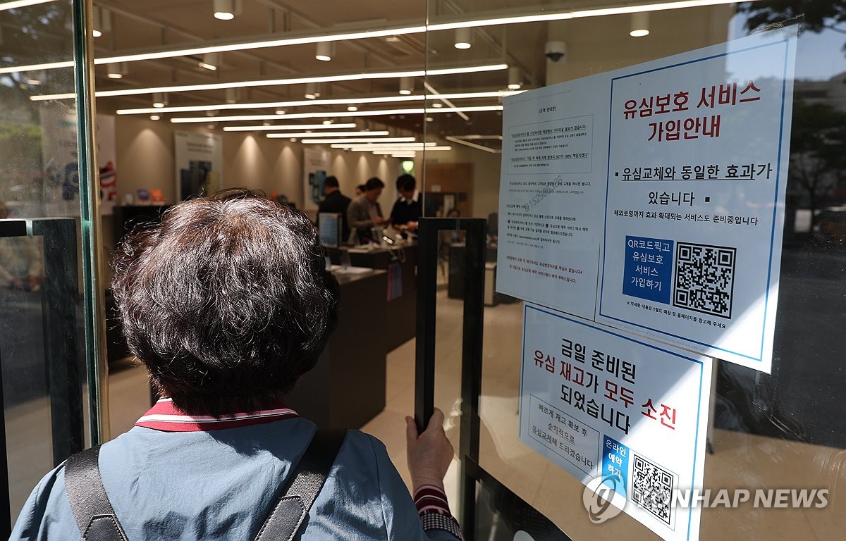 (서울=연합뉴스) 서명곤 기자 = 30일 서울 시내 한 SK텔레콤 인증 대리점에 유심 재고 소진과 유심보호 서비스 가입 안내문이 동시에 붙어있다. SK텔레콤은 해킹 사태 여파로 29일에도 3만명 넘는 가입자가 다른 통신사로 번호 이동하며 유심 무상교체가 시작된 이후 이틀간 7만명 넘는 이탈 흐름이 이어졌다. 2025.4.30 seephoto@yna.co.kr