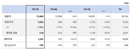 매출은 1조3천866억원으로 작년 동기 대비 1.2% 감소했다.