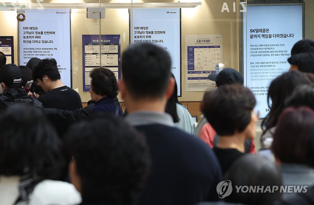 (서울=연합뉴스) 김성민 기자 = 가입자 유심(USIM) 정보를 탈취당한 SK텔레콤이 유심 무료교체 서비스를 시작한 지 이틀째인 29일 서울 시내 한 SKT 대리점에 'SK텔레콤은 끝까지 책임을 다하겠습니다'라는 문구가 쓰여져 있다. 2025.4.29 ksm7976@yna.co.kr
