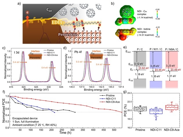 연구팀은 EDIAs 물질을 PSCs에 도입하고 X선 광전자 분광법(XPS)과 자외선 광전자 분광법(UPS)을 포함한 심층 분석을 진행해 EDIAs 물질이 PSCs의 장기 안정성과 변환 효율을 향상하는 메커니즘을 규명했다.