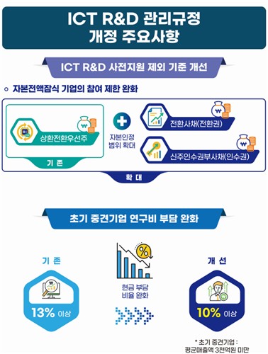 개정 규정에 따르면 기존 자본전액잠식 관련 ICT R&D 사전지원제외 기준이 개선됐다.